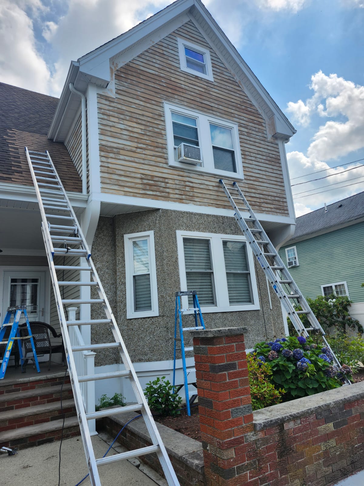Limpieza profunda de fachadas, patios, entradas y superficies externas.